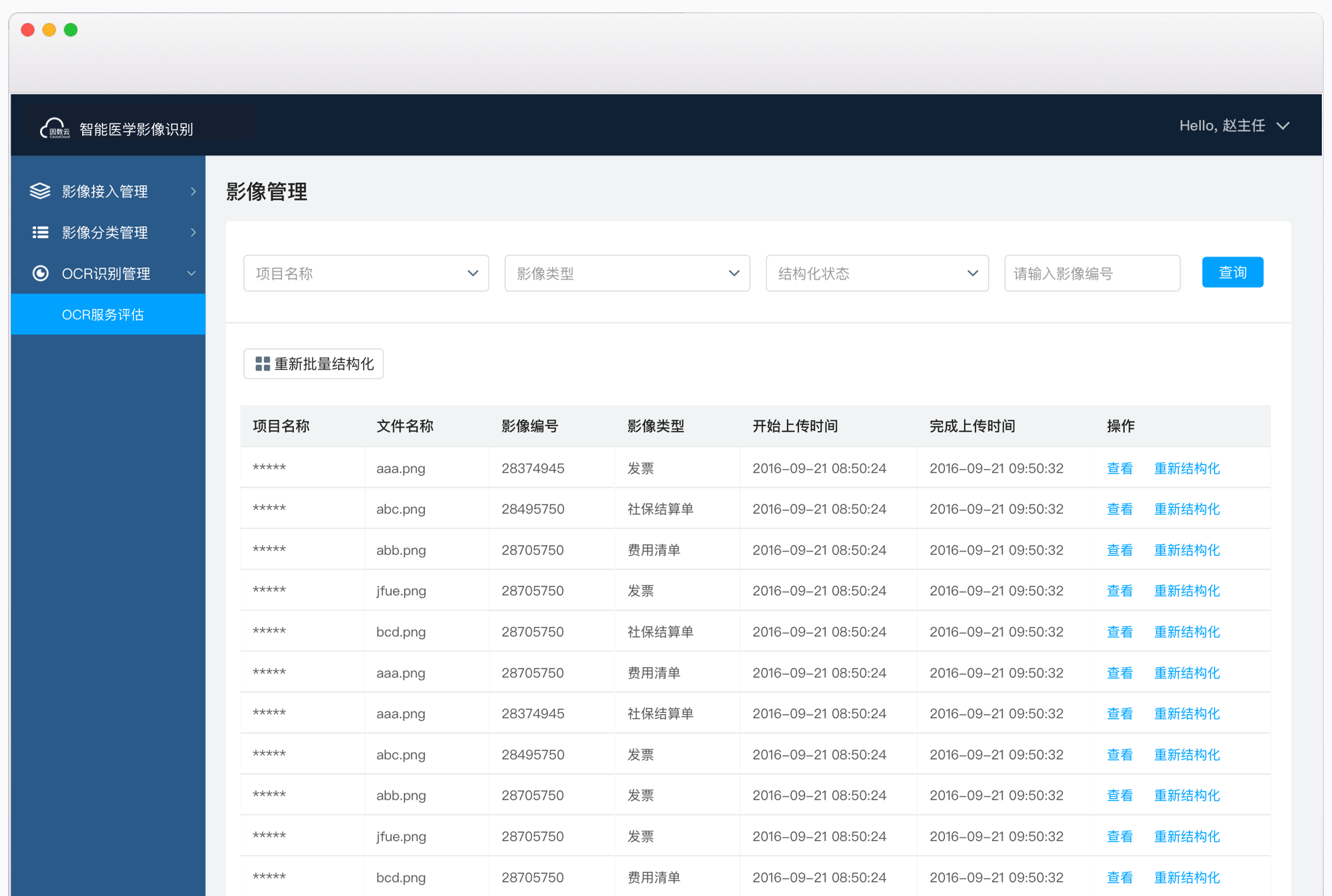 基于医学知识大脑,通过OCR技术对健康险场景下医疗影像件进行智能分类识别,并对影像件识别后的大段文本信息进行结构化,形成初始结构化结果,最终对初识结构化结果中具有特定意义的医学术语和关键名词进行标准化归一